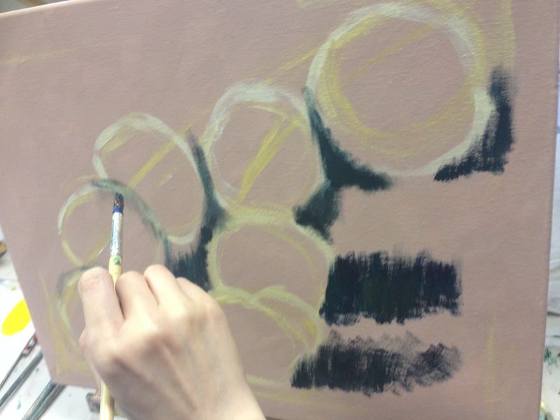 Having found the lines of counterpoint the student is defining the darkest tones first.