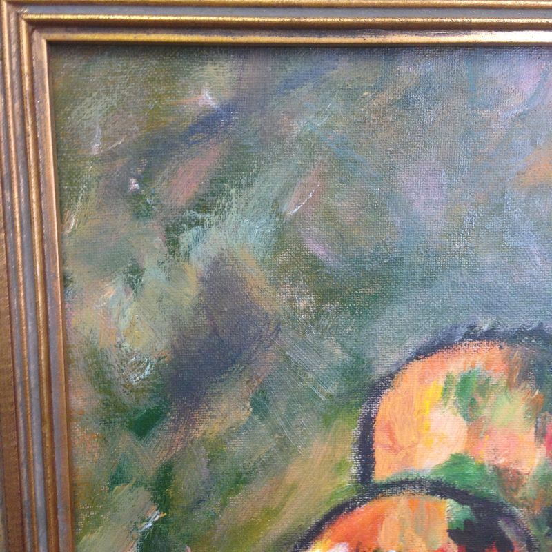 The gorgeous backgound textures on Naomi's Cezanne are difficult to capture with a camera.