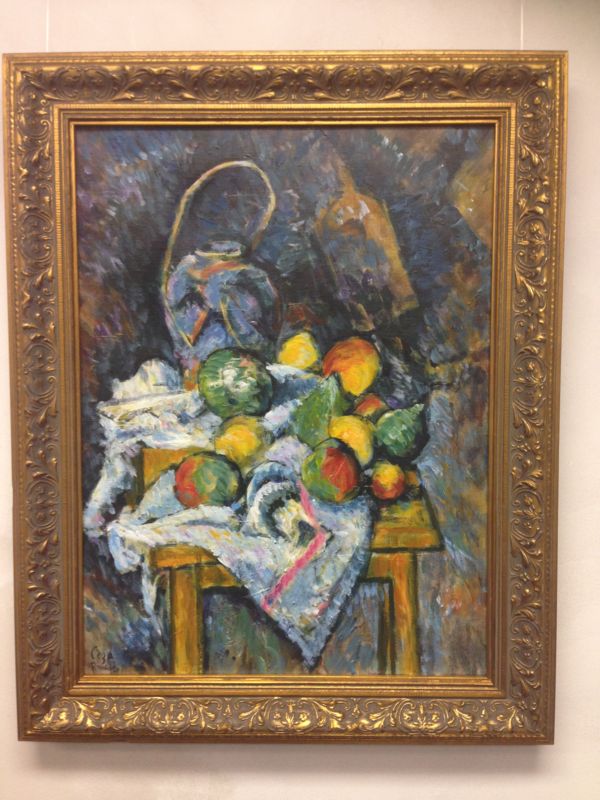My version enables students to closely examine the brushtrokes, which are not easily descernible in a 2D reproduction. In this interpretation I have made the brush strokes more obvious to serve as a role model for Cezanne's "constructivist" method.