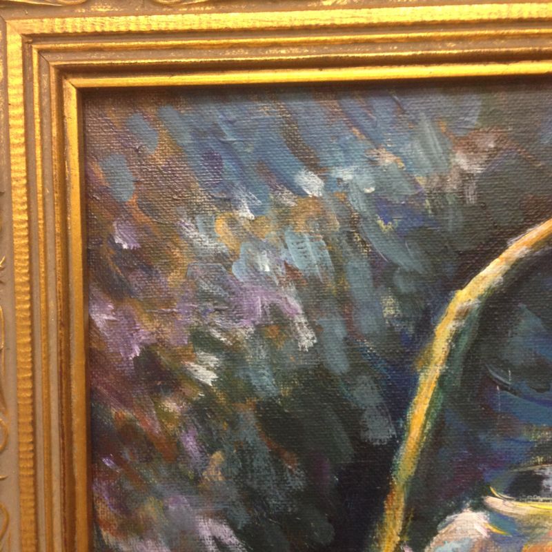 You can see the genius of this type of frame, as it picks up the warms and emphasises the cools in the painting.