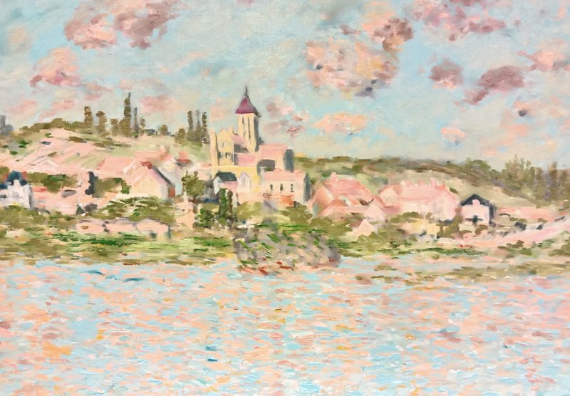 Monet created about 30 paintings of Vetheuil according to his usual method en plein air and showing the effect of light on the subject at different times of the day.