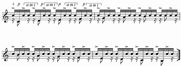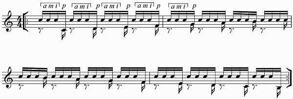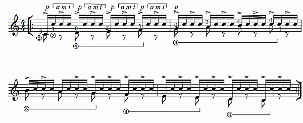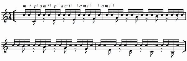 The standard right hand tremolo pattern p - a- m - i is a variant of our basic STROKING pattern a - m - i - p.